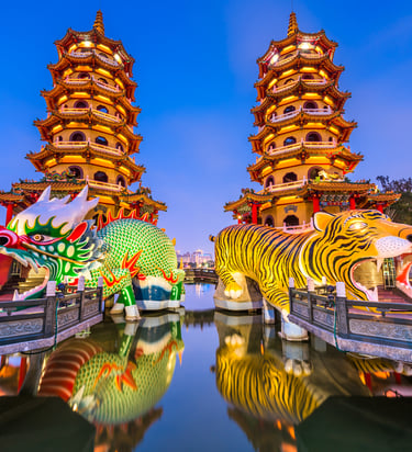 Viaje de tres dias por el centro de la isla donde visitaremos el Chung Tai Chan en Puli, la granja de Qingjing con sus espectaculares vistas y el lago de Sun Moon Lake donde descubriremos su leyenda y mucho mas!