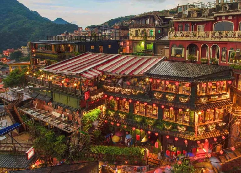 Día 7: Desayunamos en el hotel y seguimos nuestro viaje pasando por el punto mas al este de Taiwán en el que se encuentra el faro de Sandiaojiao. Mas tarde llegaremos a Jiufen, repondremos fuerzas y visitaremos el parque geológico de Yangmingshan. Este parque es conocido por su diversidad geológica, que incluye montañas, fuentes termales naturales, valles y campos de flores. Volveremos a Jiufen y nos perderemos por sus calles conociendo la historia de este precioso pueblo. Aquí pasaremos nuestra última noche.