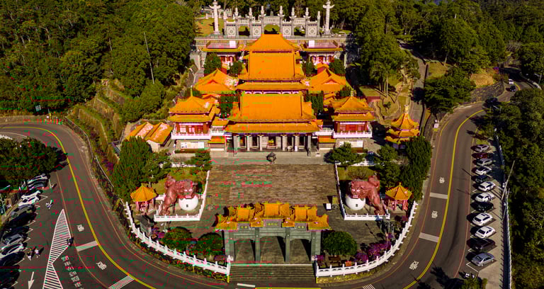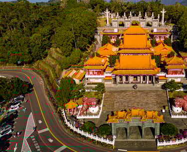 Una vez preparados, saldremos de Taichung para recorrer la icónica carretera 136, famosa entre los moteros por sus curvas y paisajes. Nuestra primera parada será el templo Qingliang Huguo, un enclave tranquilo rodeado de naturaleza.